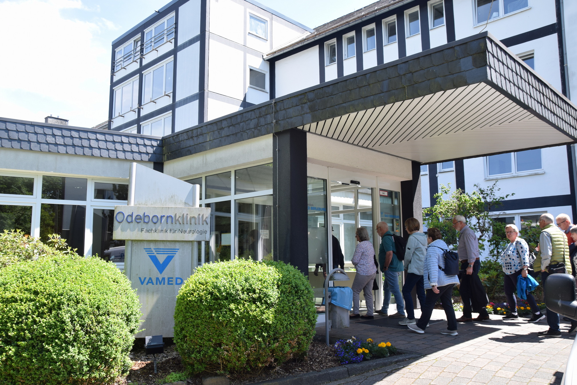 Eine informative Reise in das landschaftlich attraktive, waldreiche Rothaargebirge unternahmen Mitglieder des Parkinson-Forums Kreis Steinfurt e.V. gemeinsam mit Vorstandsmitgliedern des Vereins. Ziel war die VAMED-Rehaklinik, Fachklinik für Neurologie, Bad Berleburg. Hagen Libeau, als erster stellvertretender Vorsitzender zurzeit Leiter des Forums und der Sonderbeauftragte Reiner Krauße begrüßten das Publikum im Reisebus und führten durch den Tag. Kernpunkt des Aufenthaltes war der Vortrag „Möglichkeiten einer stationären Parkinsonbehandlung von der Komplextherapie in Fachkliniken bis zur speziellen Parkinsonreha.“