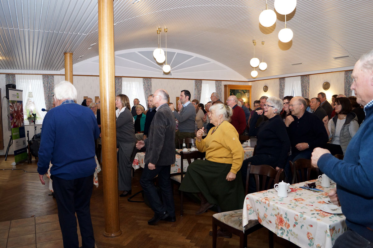 Für diese Vortragsthemen interessierten sich über 90 Teilnehmer, die sich im Landgasthof Teepe eingefunden hatten. Zunächst brachten Angelika Relt und Angelika Sörgel die Anwesenden mit flotter Musik und gymnastischen Übungen in Schwung. Traditionsgemäß wurde, bevor der offizielle Teil der Veranstaltung begann, ein von Veronika Trötschler angestimmtes Lied gesungen. In seiner Begrüßung gab der Vorsitzende Reiner Krauße aktuelle Informationen und stellte zahlreiche neue Mitglieder vor, so dass der Verein nunmehr aus 364 Mitgliedern besteht.
