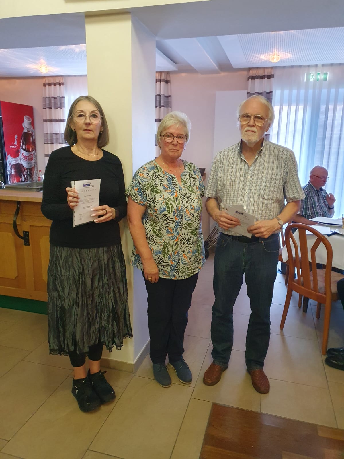#Bei der Ehrung der langjährigen Mitglieder sollten 20 Personen für 10 Jahre und 2 Personen für 25 Jahre Mitgliedschaft geehrt werden. Leider waren von den Jubilaren nur Anni Winter und Hagen Libeau anwesend. Sie bekamen von Dorothea Stauvermann und Reiner Krauße eine Urkunde des VdK Landesverbandes, Brosche und einen Stadtgutschein überreicht. Den weiteren Jubilaren werden Urkunde und Brosche per Post zugeschickt.