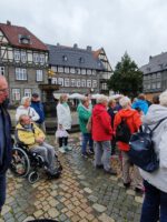 Bei einer Tagesfahrt durch den Westharz, mit Begleitung der Gästeführerin Ulla Uhlmann, wurde als erstes Ziel Goslar angesteuert. Ein Höhepunkt der Stadtführung war das Glockenspiel, das begleitet von einem Figurenumlauf, bergbauliche Lieder intoniert. Auch die schöne Fachwerkstatt Quedlinburg mit ihrem historischen Stadtkern, die zum UNESCO Welterbe zählt, war Ziel der Reisegruppe, bevor es zum Hexentanzplatz Thale weiterging. Aus 450 m Höhe hatte man einen herrlichen Rundumblick in die Harzlandschaft. Über die höchste Staumauer Deutschlands brachte der Bus die Gruppe zur Rappbodetalsperre, wo während einer Floßfahrt Kaffee und Kuchen serviert wurde.
