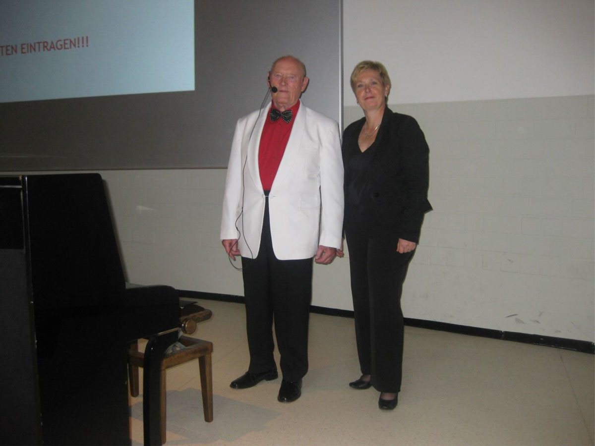Die Pianistin Anita Everink (Losser, NL) und Bassbariton Walter Winter (Ochtrup) vom Parkinson-Forum Kreis Steinfurt trugen mit „Als Büblein klein,“ „ Wenn auch die Jahre enteilen“ und „Ich war noch niemals in New York“ auf musikalische Weise zum Gelingen der Veranstaltung des UKM bei und ernteten den verdient großen Applaus.