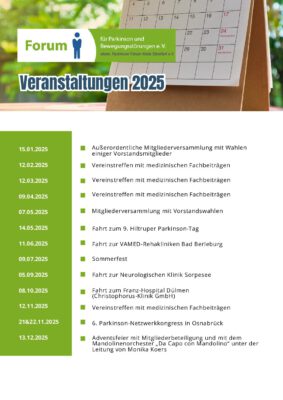 aktive Mitarbeit Alleinstehende Alter Angehörige Angehörigen-Gesprächskreis Ausflug Bewegung digitale Angebote einfach Leben Ergotherapie Ernährung Forschung / Studien Freezing Gesundheit Gesundheitspolitik Gesundheitswesen Gruppenreise Harnwegsinfektionen Herzerkrankung Herzmedizin Hiltruper Parkinson-Tag Hirnstimulation Humor Krebs Kurse & Fortbildung Medikamente Moderne Medizin Morbus Parkinson Neurologie Parkinson Parkinsontherapie Patientennetzwerk Patientenrechte Pflege Psyche Rehabilitation Schlafstörung Schluckstörung Schmerz Selbsthilfe Tiefe Hirnstimulation Umgang mit Krankheit Urologie Vereinsfahrt Vorträge