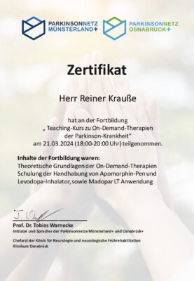 Teilnahmebescheinigung On- Demand Schulung Krauße